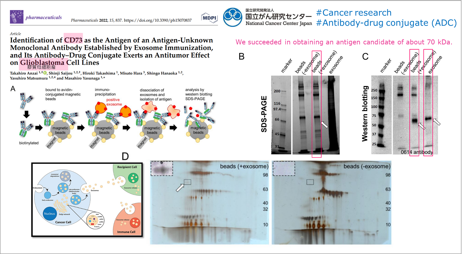 透過 exosome immunization 開發出針對多通道膜蛋白的單株抗體。