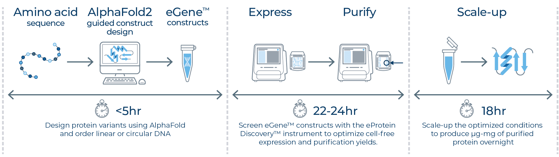 - 加速到蛋白質產出:48 小時內交付純化、可分析的活性蛋白質,實現快速驗證。