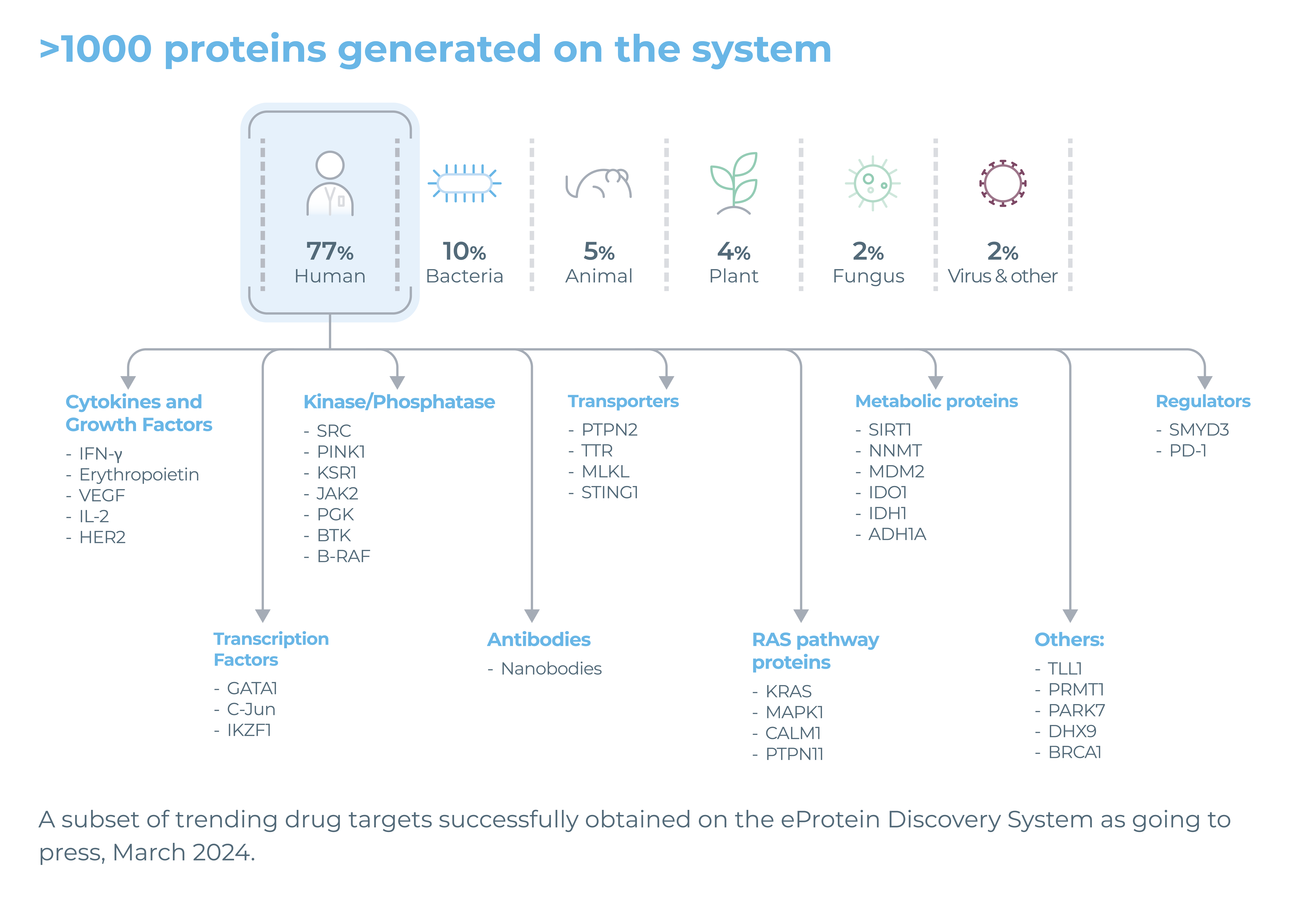 已成功生產的蛋白質類別: