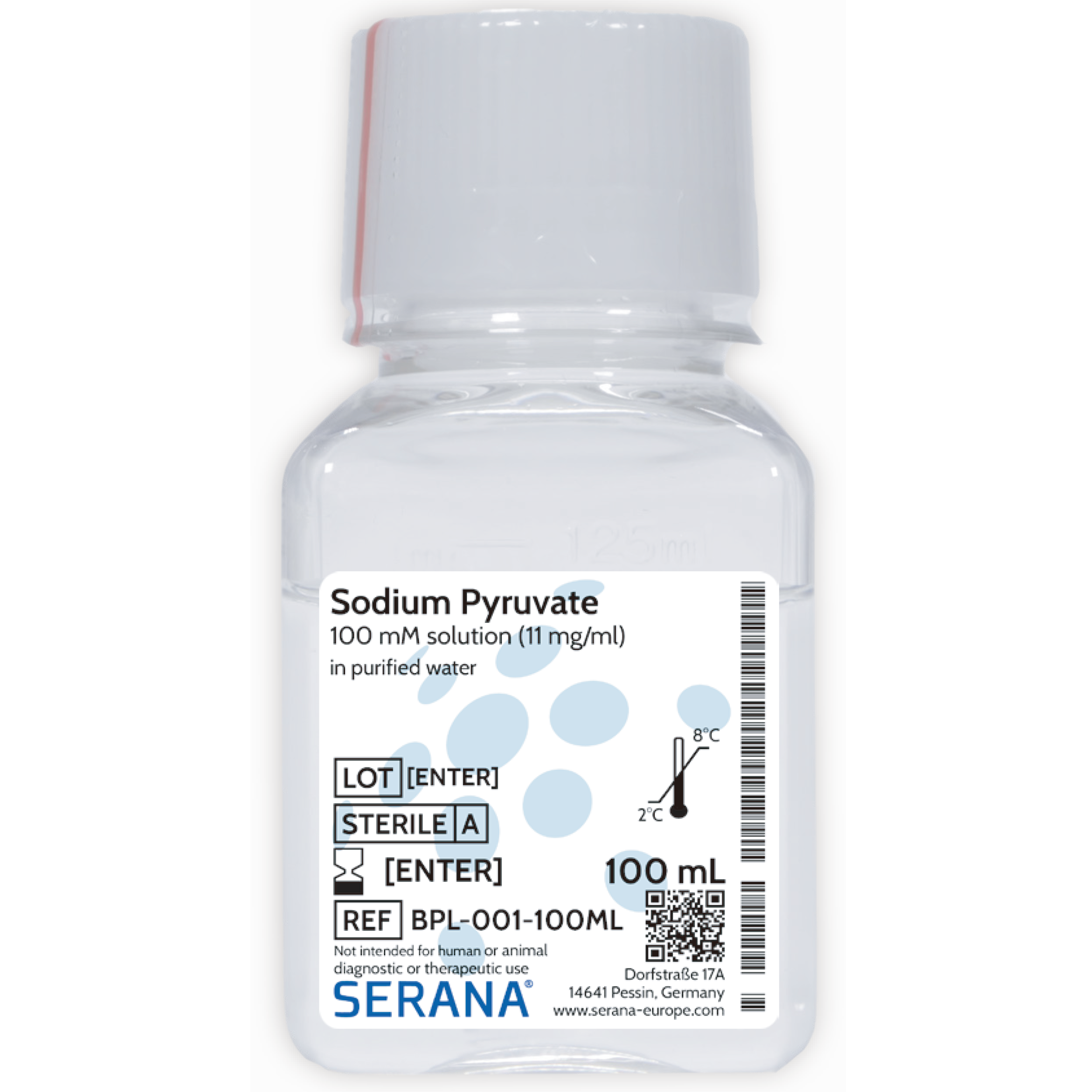 Sodium Pyruvate Solution (100 mM) 通常被添加到細胞培養基中,作為額外的能量來源。雖然培養基中已有葡萄糖(Glucose),但某些代謝旺盛或受損的細胞(如神經細胞或某些雜交瘤細胞)可能無法僅靠葡萄糖快速提供足夠能量。丙酮酸鈉可以直接進入線粒體,跳過醣解作用的前半段,直接參與能量生產。