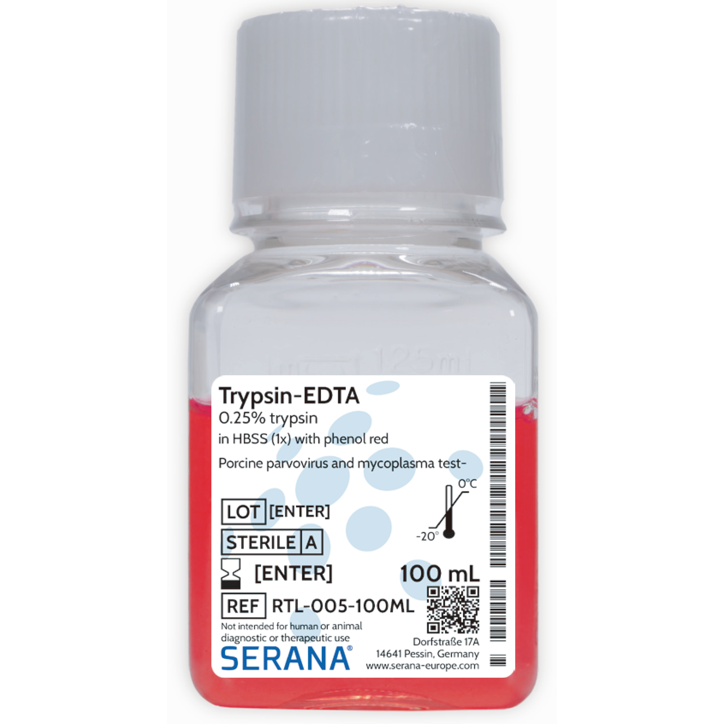 | RTL-005-100ML | 0.25% Trypsin-EDTA (0.25 %) in HBSS (1x) | [+] phenol red | 100 ml |