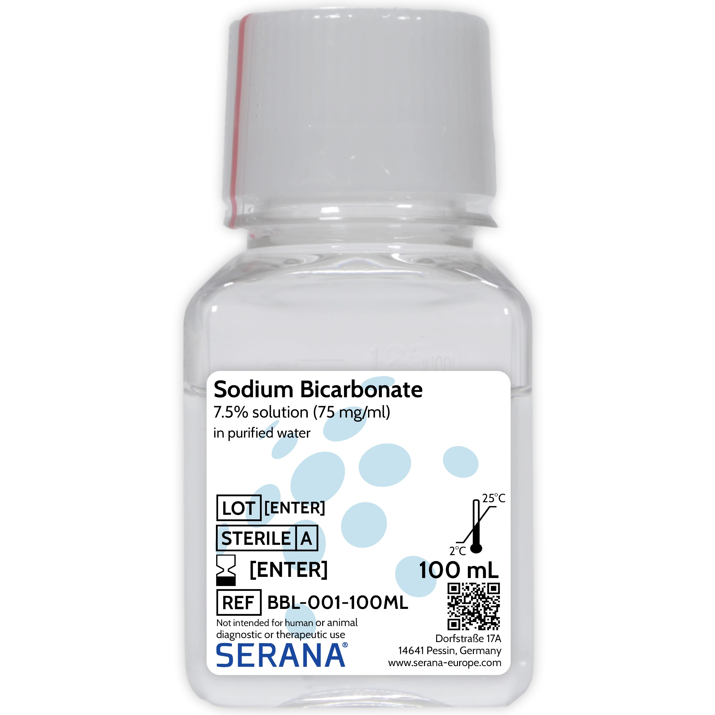 Sodium Bicarbonate Solution (7.5%) Sodium Bicarbonate (碳酸氫鈉):大多數商業化培養基(如 DMEM, RPMI 1640)中最核心的緩衝成分。用於在4-10%二氧化碳濃度下維持細胞培養基的pH值。除了緩衝功能外,碳酸氫鈉還提供一定的營養,且極少表現出細胞毒性。 |