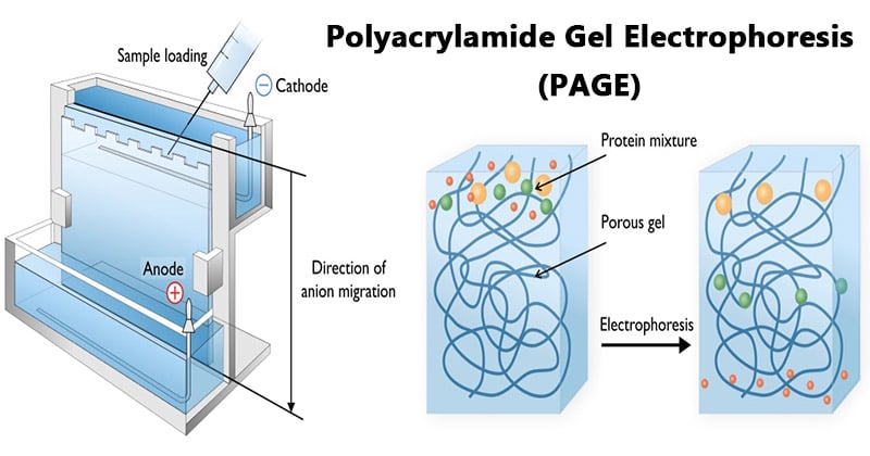 圖片來源: https://microbenotes.com/polyacrylamide-gel-electrophoresis-page/