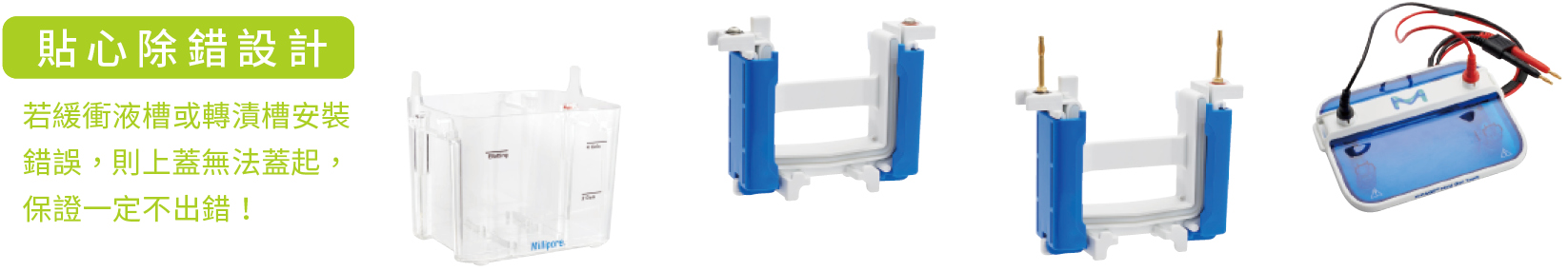 - mPAGE® mini wet Transfer轉漬槽:小容量收納,最適合millipore膜搭配使用