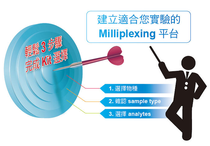 MILLIPLEX® 是一種結合 ELISA 以及流式細胞偵測的一種技術。ELISA 是將抗體接在固態的盤子上; 而 MILLIPLEX® 則是將抗體接在微珠上,微珠以紅光 (Red) 以及遠紅外光 (Infared) 兩種螢光染劑依照不同比例混合而成,總共可以組合 100 種的 color-code 微珠。不同的 color-code 微珠接上專一性辨識特定蛋白的抗體,即可辨識樣品中特定蛋白的表現。因此,MILLIPLEX® 可以在一個孔中同時定性並定量多種代測物的表現。