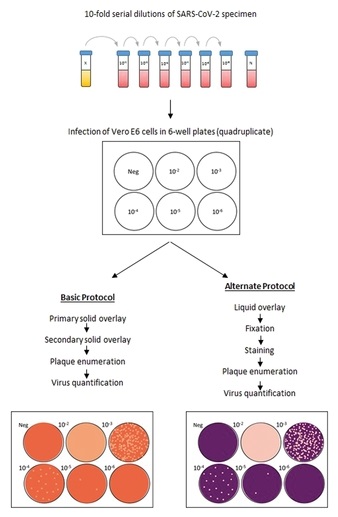 Graphical protocol overview of two plaque assay methods for the quantification of infectious SARS‐CoV‐2.