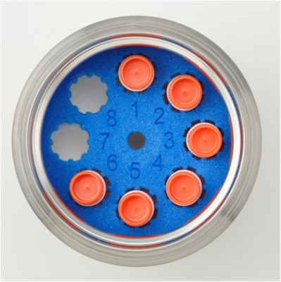 可在液態氮氣相下運輸 8 個 1 ml~2 ml 冷凍小管,小巧安全,是短程運輸樣品的理想選擇。