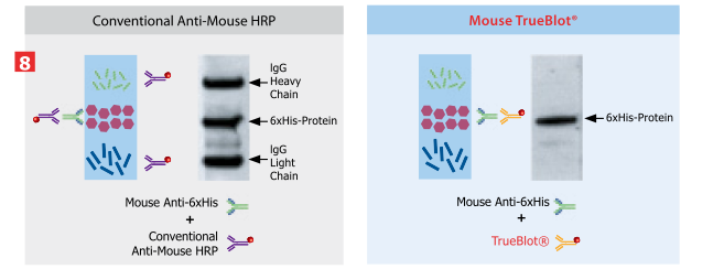 Rockland TrueBlot ® HRP conjugated anti-Ig antibody 可以取代一般的 HRP conjugated second antibody ,讓您得到可發表在期刊論文上,最清晰,最真實的實驗結果。