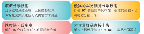將標的細胞用帶有抗體的磁珠標記,分離後最終得到之標的細胞,可直接進行後續實驗分析,用於常規細胞之分離。
