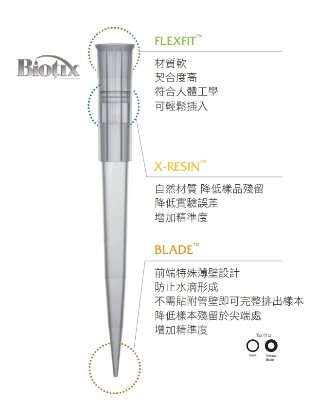 Biotix 採用 X-Resin 獨特的天然材質,表面疏水性 (Hydrophobic) 是 Polypropylene 材質的 10 倍,完全低殘留 (Low Retention) 的特性,可輕鬆吸取黏稠樣本,且樣品不易附著,減少吸取過程中因殘留的流失,尤其適合分子生物或基因檢測等需高精準度取樣實驗,因此可取得較佳的微量分注準確性,讓您在進行微量分注時更加放心。另外, Biotix 所使用的外盒為環保材質,採用可完全回收再利用的材質,重量較他牌輕巧,減少近 40% 塑料使用!