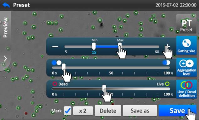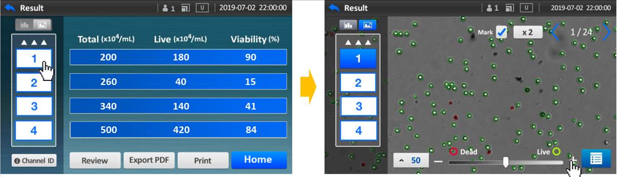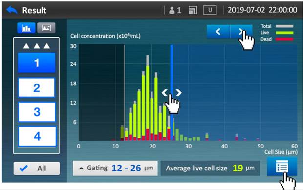 簡易操控介面,智能計算清楚顯示細胞數量及細胞存活率