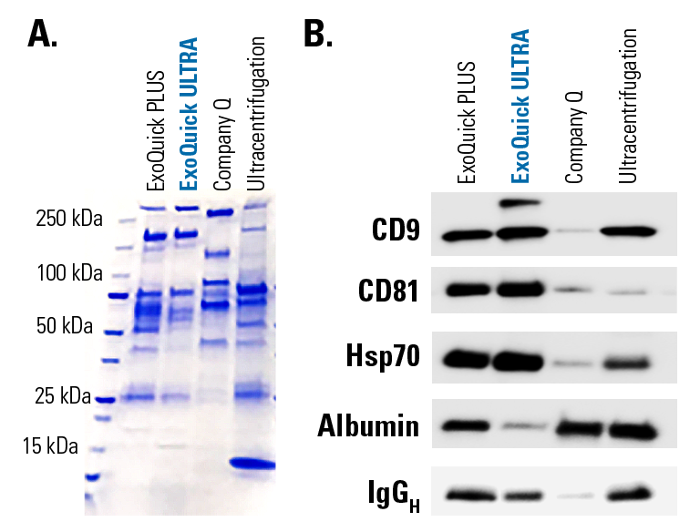 若有 protein contamination 的疑慮,可以選擇 ExoQuick ULTRA 有效降低 background