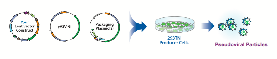 - Plasmid mix 包含 env、gag、pol 等構造基因。