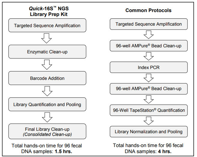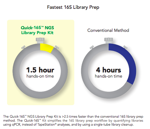 最快速的 16S 建庫方法,利用 enzyme clean up 和透過 qPCR 方式建庫和定量,大大縮短操作時間