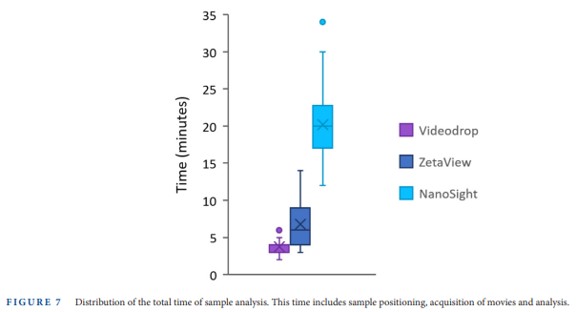 此篇文獻表明,準確且能有高度再現性的的測量會與樣本異質性和儀器偵測原理都有關聯。對於不同條件下外泌體 (EV) 濃度和濃度變化的研究較推薦使用 ZetaView,該儀器提供再現性更高的測量結果,並且只需要較少的重複實驗即可獲得化學合成奈米粒子、脂質體甚至是不同來源的 EV 大小和濃度分析。因此,由於軟體和硬體結構,相對於 NanoSight NS300,ZetaView 在連續稀釋的 EV 樣本中其數據更準確 (%BIAS範圍:2.7–8.5) ,也更精確 (%CV範圍:0.0–4.7)。