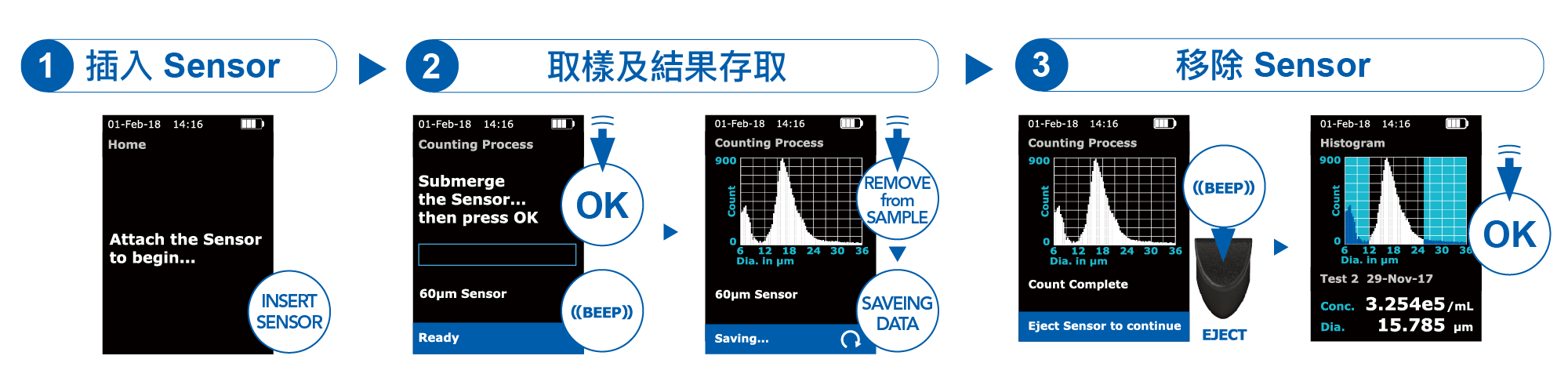 | 感應器大小 | 操作濃度範圍 | 細胞大小 (μm) | 包裝 | ||