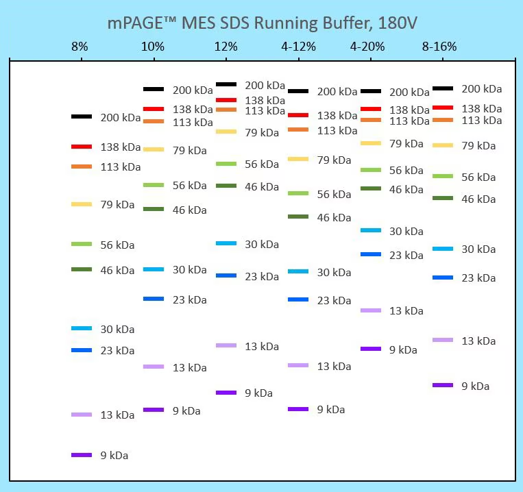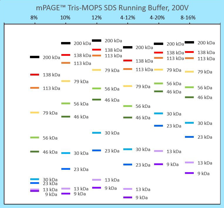 【Bis-Tris running buffer】兩款running buffer適合分離不同分子量的目標蛋白質:MES適合分離小分子量蛋白,MOPS適合分離大分子量蛋白。