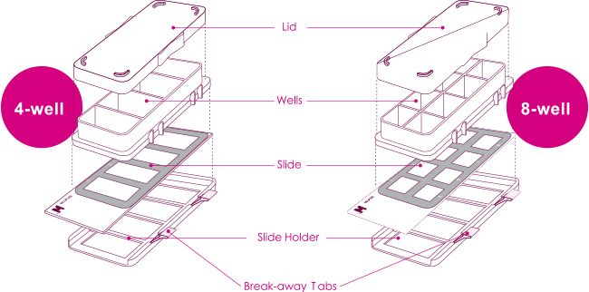 EZ Slide可簡化細胞染色 (ICC) 實驗流程,只需將細胞培養於EZ slide 中,直接在玻片上進行細胞固定和染色,然後可直接將玻片(Slide) 放置在顯微鏡下觀察。